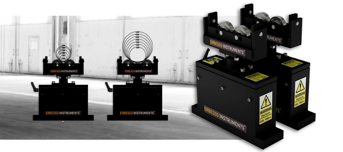 The SBS-300 can support up to 300 kg (150 kg each support), and it allows shaft diameters of 152 mm (6 in) at journal diameter. Also has an elevator screw to adjust the position in case the tracks rotor supports have different diameters up to 25.4 mm (1 in) and a swinging movement for auto-alignment.