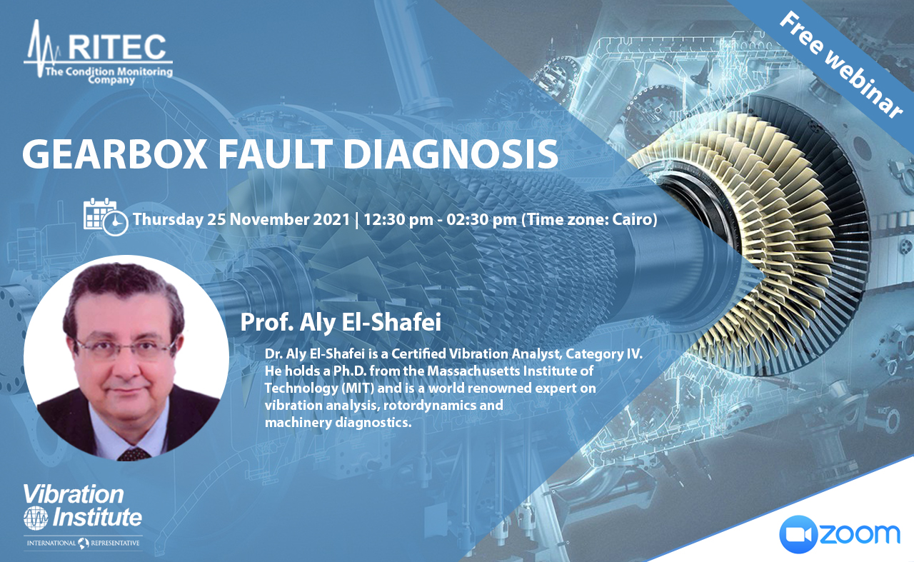 RITEC The Condition Monitoring Company announced the free webinar "Gearbox Fault Diagnosis", was presented by Prof. Aly El-Shafei, virtually online on Thursday 25-11-2021, from 12:30 PM to 02:30 PM (GMT +2 - Time Zone: Cairo)
