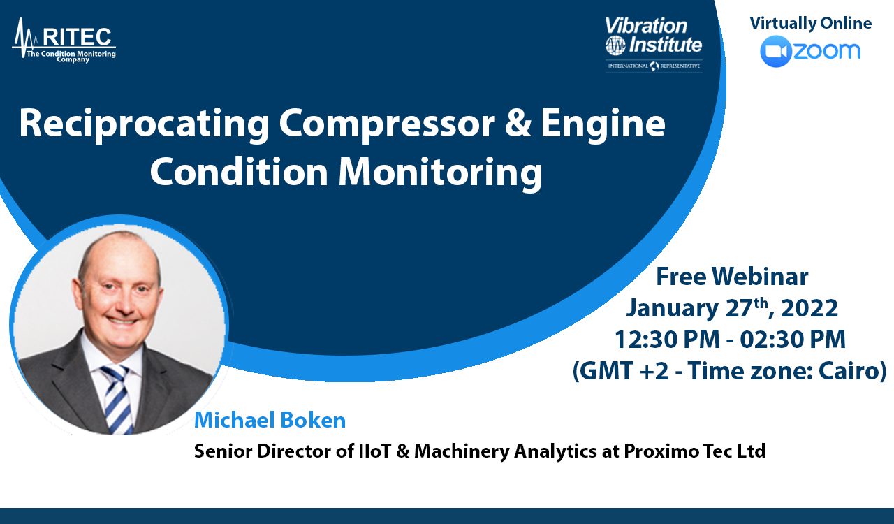 RITEC The Condition Monitoring Company announced the free webinar "Reciprocating Compressor & Engine Condition Monitoring", was presented by Michael Boken - Proximo Tec Ltd, virtually online on Thursday 27-01-2022, from 12:30 PM to 02:30 PM (GMT +2 - Time Zone: Cairo)