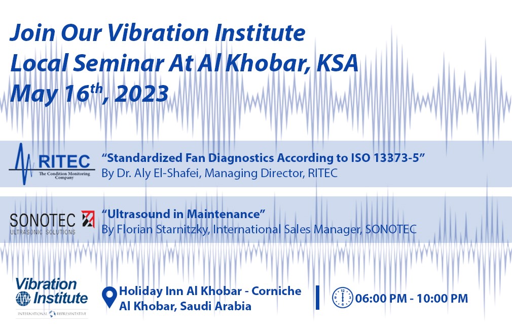 RITEC, as the sole representative of the Vibration Institute in the Middle East, announced another informative Vibration Institute Local Seminar, held in Holiday Inn AL Khobar – Corniche, Saudi Arabia on Tuesday, May 16th, 2023 from 6:00 PM to 10:00 PM.