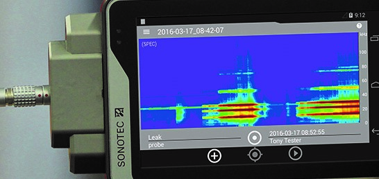With the new SONAPHONE maintenance staff can see and hear everything that happens in the frequency range from 20 to 100 kHz. In contrast only a narrow frequency range can be gathered with comparable testing technology. By integrating new sensors, innovative measurement technology and advanced data processing, SONOTEC has successfully provided a completely new analysis of the ultrasonic signal, which is unrivalled on the market. This makes new applications like leak classifi cation possible.